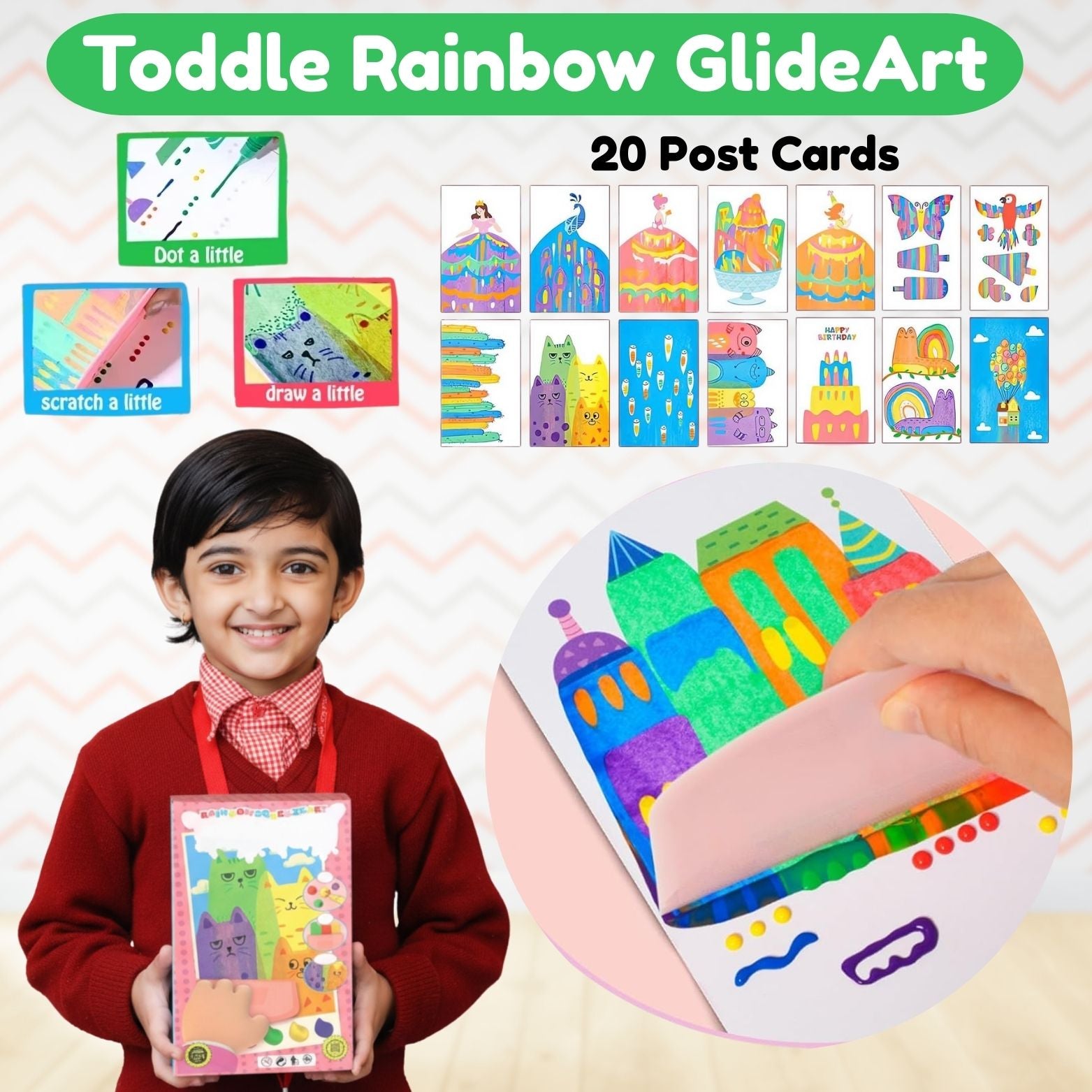 Toddle Rainbow GlideArt helps kids express themselves through vibrant, mess-free art. Instead of messy paints and brushes, they simply squeeze and glide to create stunning rainbow effects that build confidence and spark imagination.