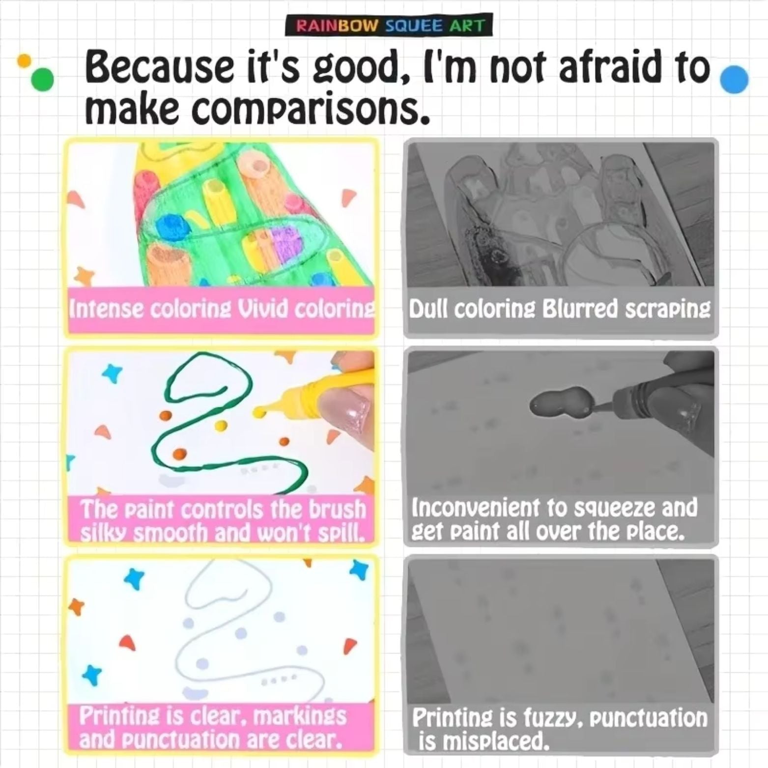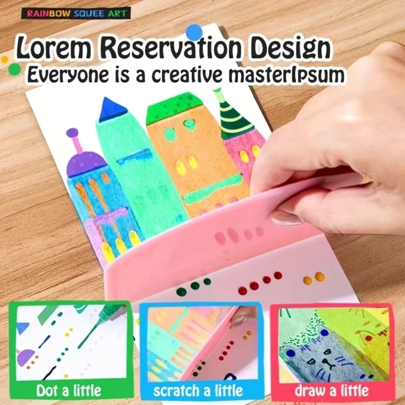 Simply fill the squeeze tool with colors, press and glide across the page, and watch magical rainbow designs appear instantly. No brushes, no spills, just pure creativity that kids can enjoy over and over.